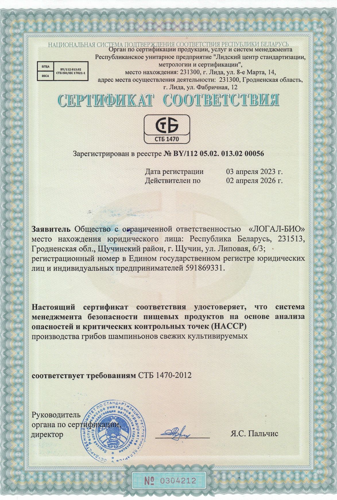 1.3. Почтовый адрес ООО «ЛОГАЛ-БИО»; адрес в сети Интернет: https://logal-bio.by
